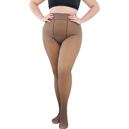 Uritoria Fleece Lined Winter Thermal Leggings with Sheer Skintone Look- Coffee -2XL